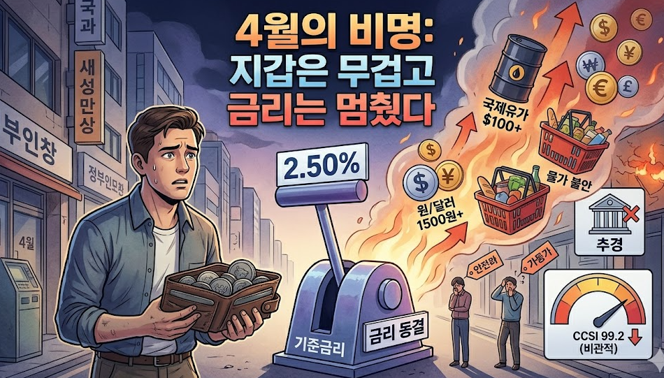 시기도 공교롭습니다. 4월 10일 한국은행 금융통화위원회는 기준금리를 2.50%로 그대로 유지하기로 결정했습니다. 인하도, 인상도 아닌 동결이었습니다. 경기는 나빠지고 있는데 왜 금리를 내리지 않았을까요.